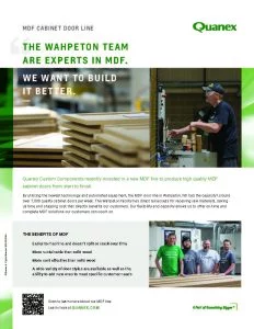 Engineered wood is a derivative of solid wood products made by binding layers of solid wood together with adhesives. Quanex purchases our medium-density fiberboard (MDF) and particleboard from trusted suppliers across the United States and Canada. We then process the MDF into kitchen and bathroom cabinet doors and drawers. Quanex Custom Components recently invested in a new MDF line to produce high-quality MDF cabinet doors from start to finish at our Wahpeton, North Dakota facility. Utilizing the newest technology and automated equipment, the MDF door line in Wahpeton can produce over 7,000 quality cabinet doors per week.