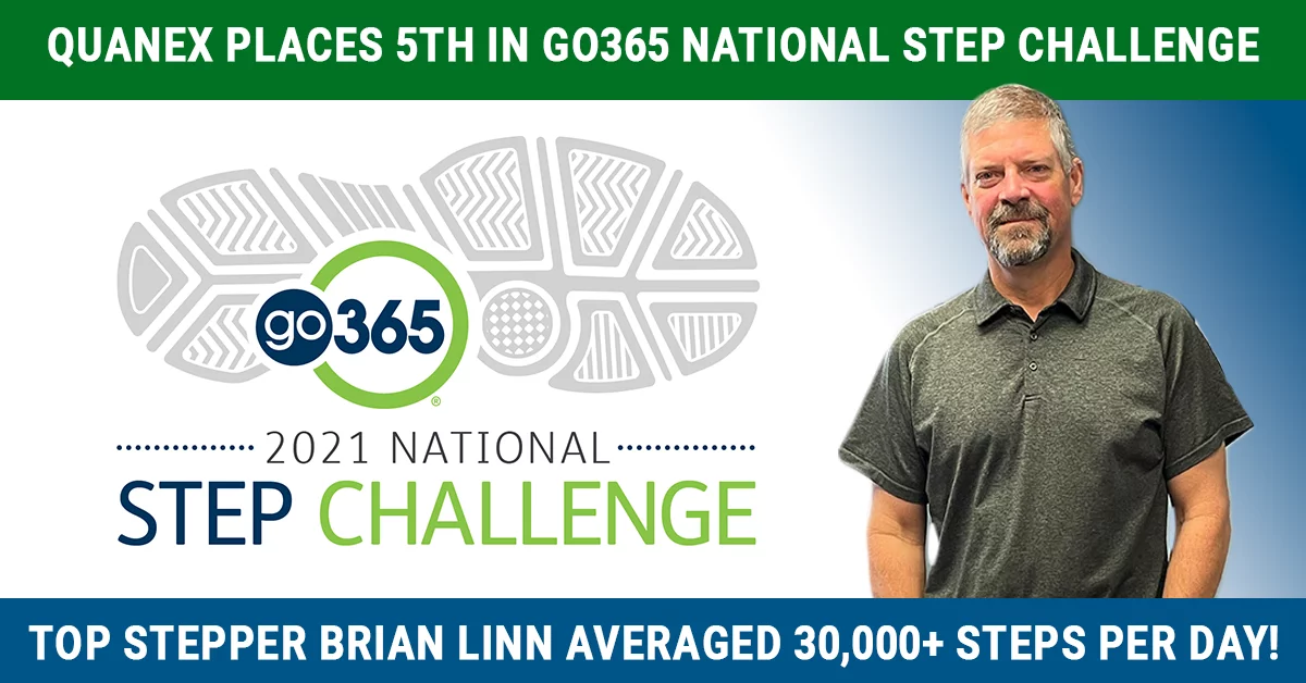 The Go365 Challenge is a health and wellness competition that focuses on improving the fitness of employees from companies across the country. Quanex teams participate each fall. This year, Brian Linn, a product design specialist for Quanex’s cabinetry business, propelled the team to the top as our top stepper. Brian averaged more than 30,000 steps per day throughout the competition and placed 29th of 3,446 total participants around the country.