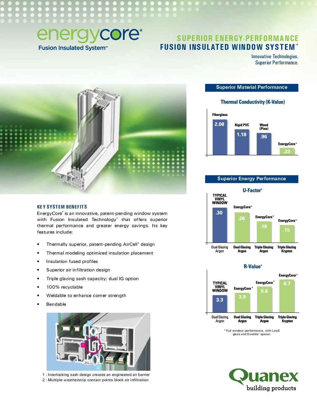 Featuring AirCell™ Fusion Insulated Technology that blocks thermal conductivity, EnergyCore technology is six times more efficient than fiberglass, four times more efficient than rigid PVC and three times more efficient than wood.